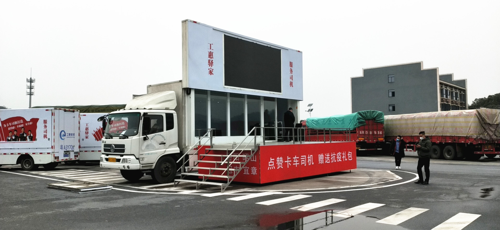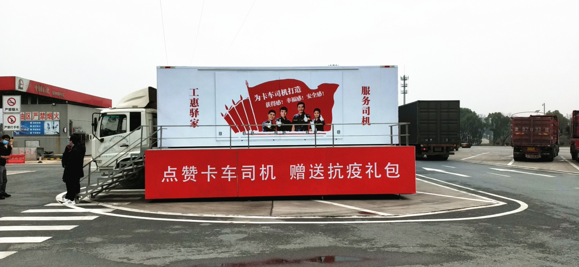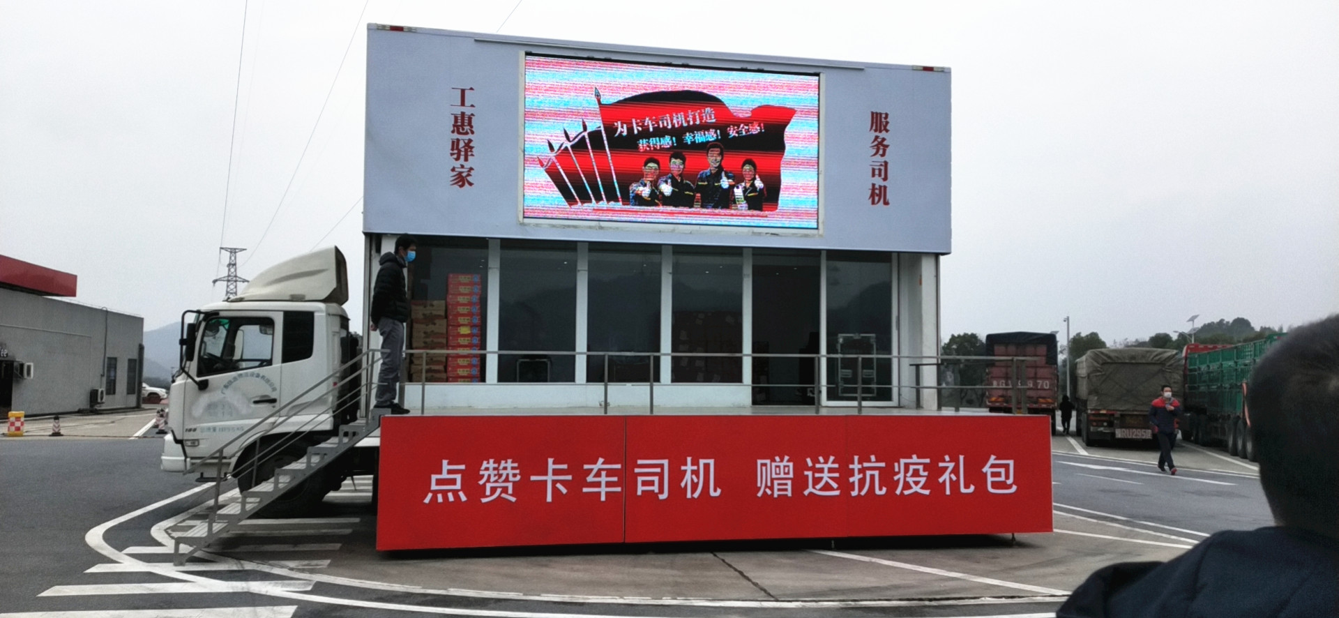 疫情特殊時期,信源大篷車助力中工服工惠驛家信息服務有限公司(以下簡稱“中工服工惠驛家”)在湖南昭山服務區(qū)設立了卡車司機防疫服務點,成為疫情防控期間宣傳和服務的移動陣營。